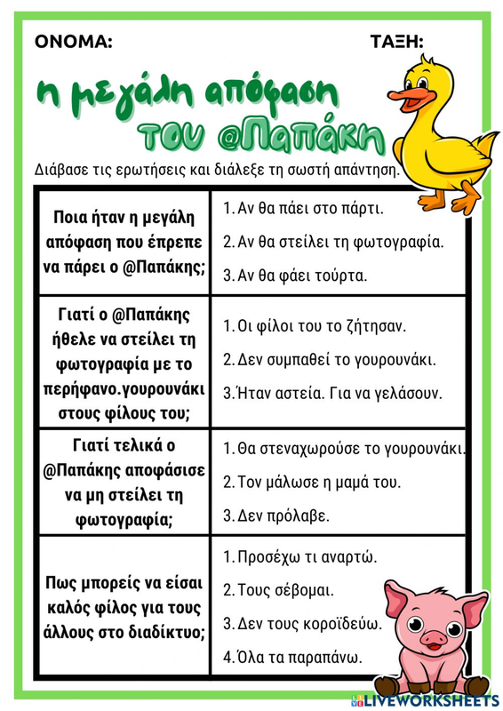 Η μεγάλη απόφαση του Παπάκη worksheet