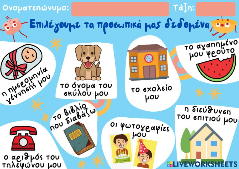 Φύλλο Εργασίας: Προσωπικά Δεδομένα worksheet